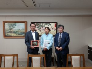 10月22日(水曜日)、キルギス共和国のキルギス・トルコ・マナス大学(以下KTMU)農学部植物保護学科からSaikal Bobushova講師が農学研究科を訪れ、田尾龍太郎研究科長および田中千尋教授と会談を行いました。 Bobushova講師は、キルギス共和国の主要産業が農業と水力発電であること、およびKTMUが12の学部、1つの大学院、6つの研究センター、4つの研究所、ならびに職業学校から成り、在籍学生数は5918名で、そのうち67%が女子学生であることを紹介しました。またさらに、同大学植物保護学科が環境負荷の低い植物保護資材として微生物農薬の開発や利用法の研究を進めていることなども説明しました。 両者は今後の交流を深めることで合意し、会談は終了しました。